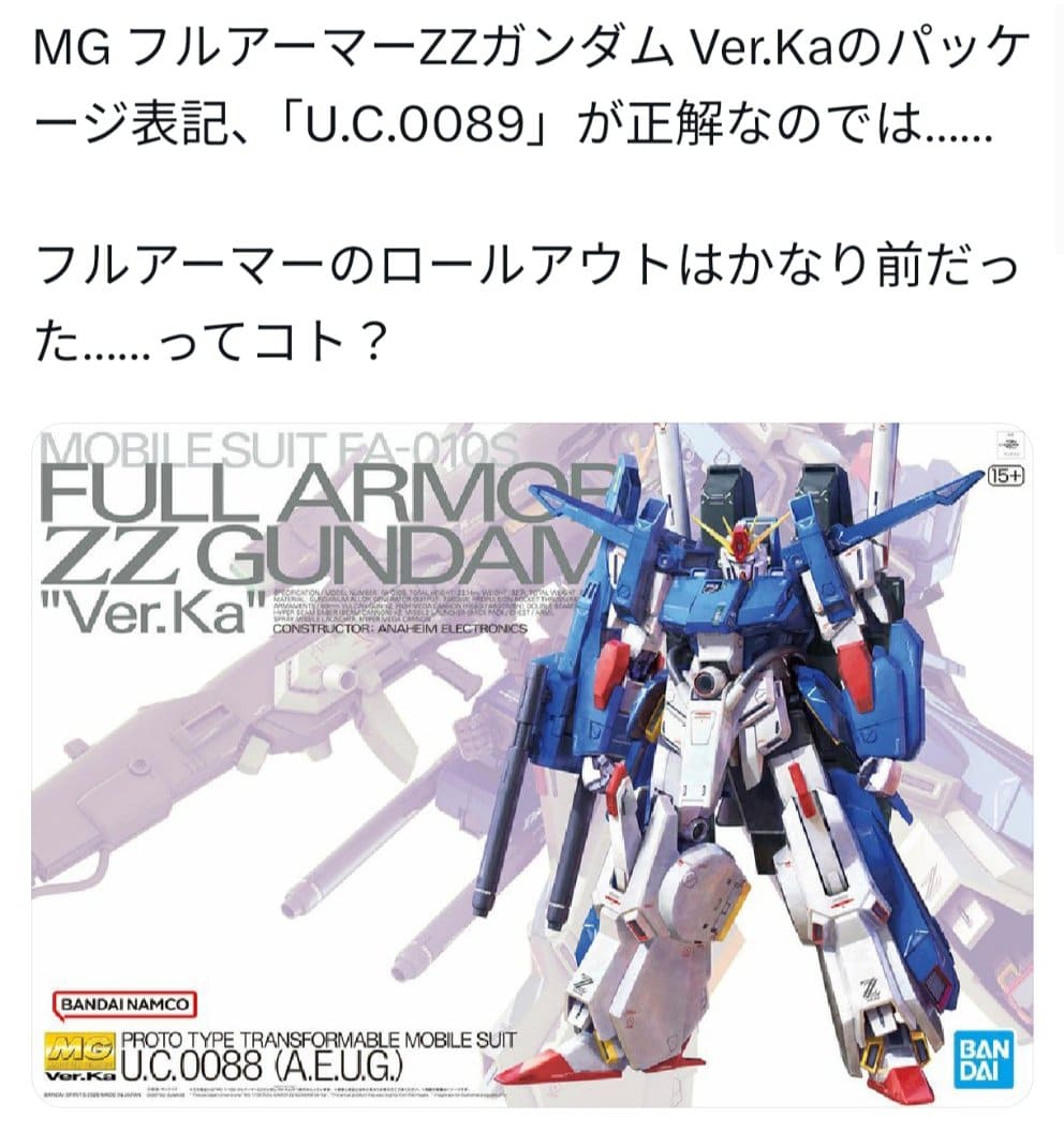 【ガンプラ】フルアーマーZZのロールアウトは0088で合ってるの?